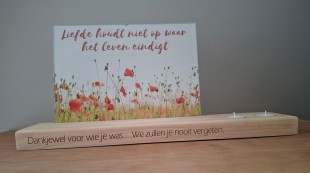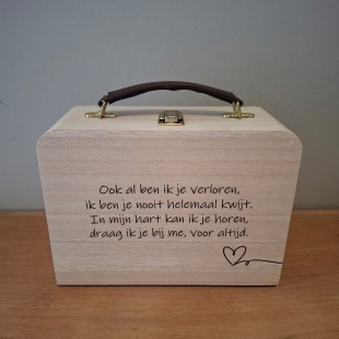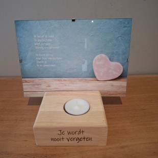 • Nr: Thuisbewaring 27/Koesterdoos 'herinneringsplek' (fotomapje, theelichthouder, mini-vaasje en troostkaart in troostdoos)